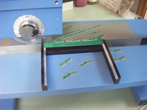 depanelizers call for a .004” to .006” flat or rounded edge which is then honed to a 30 degree sharp edge. Score-line specifications for printed circuit boards specify an angle of 30 to 45 degrees. (Bigger is better)