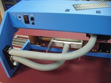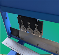 The standard K4000 is available with a 18" Linear blade for singulating panels up to 18" long. The optional conveyor will bring singulated panels out to the side. A laser at the end of the conveyor allows scrap strips to be dropped into a scrap container.