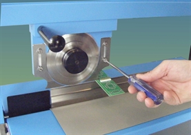 The K4000 is a motorized circular linear blade depanelizer designed to make singulating V-Scored printed circuit cards easy. Available in 3 basic models with 18". 24" and 48" long linear blades, it can be used to separate a variety of printed circuit cards made of FR4. For Alu cor V-Scored PCBs there is an optional 3 circular blade carriage which can be fitted to the K4000L or K4000L48